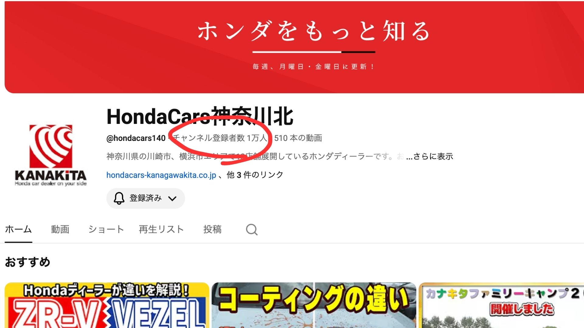 Honda Cars神奈川北の公式YouTubeチャンネルが、ついに登録者数1万人を突破しました!